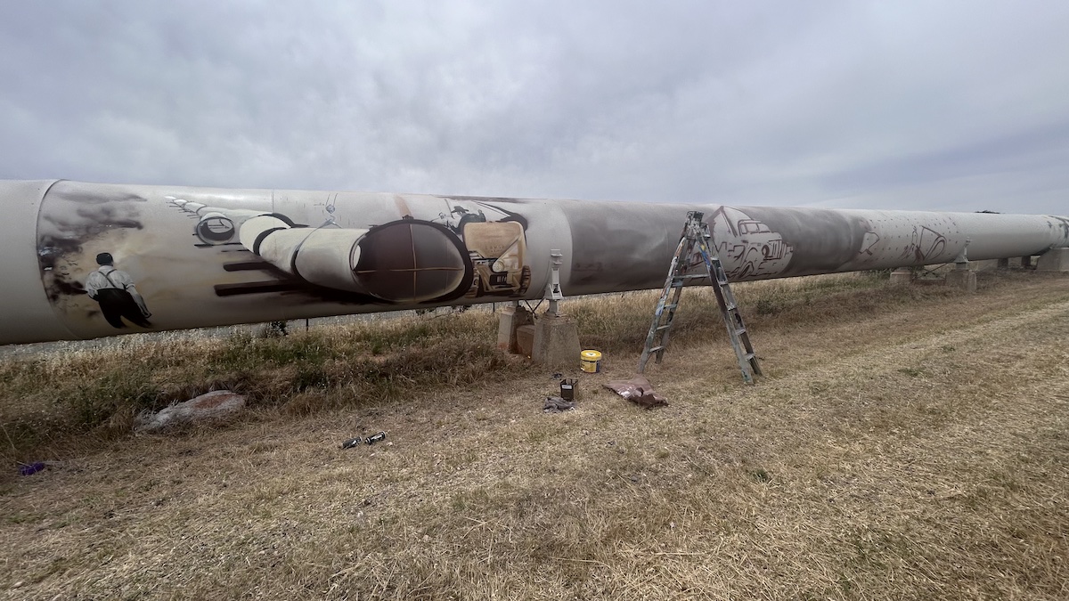 Works like this come with a lot of challenges. “The pipeline is a different sort of canvas and it comes with a lot of challenges,” said Jack. “Even just the height, and because it’s quite long but actually quite small, it was difficult getting the artwork onto it.