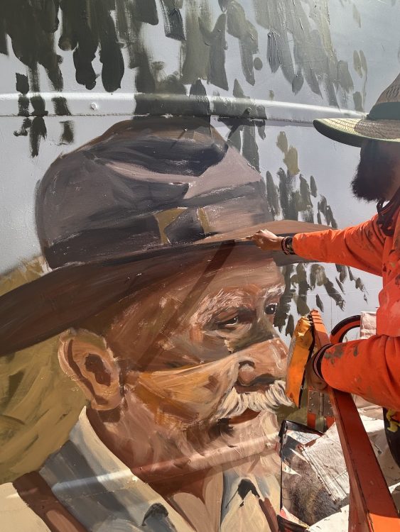 Jack worked solo on this project. With larger-scale projects like this, he uses a spray gun to do the base coat and works to block in the colours. Then he goes over with a brush to do all the detail work.
