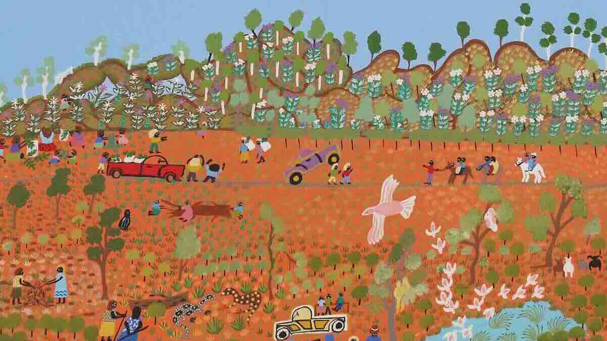 I found the entire story to be culturally and historically educational but in an autobiographical way, offering insights into daily life, the landscape, foods, and the value of water in community. The story concludes in the present, depicting her life now, as a Tangentyere Artist in Mperntwe.