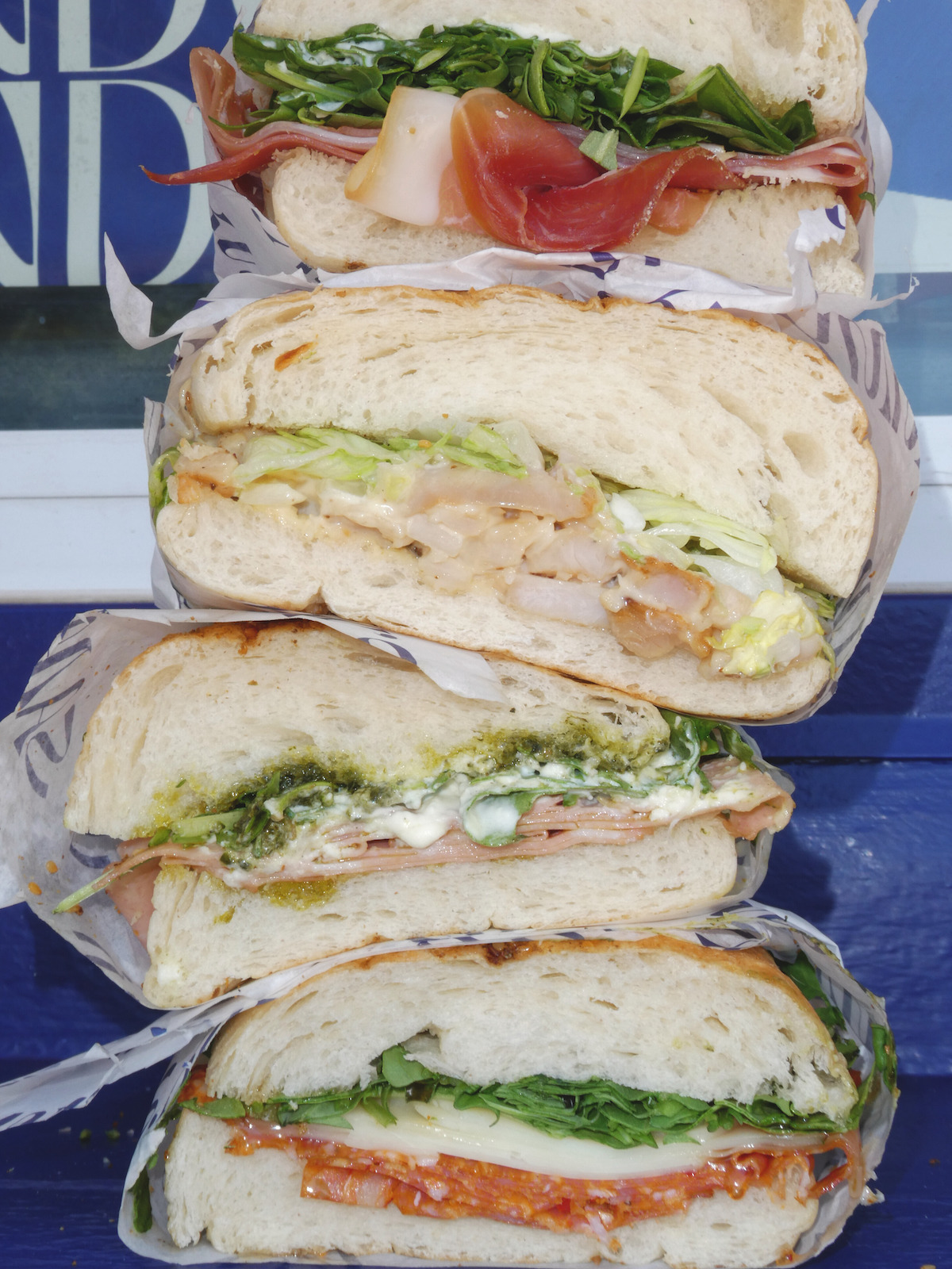 The menu includes a lineup of gourmet Italian-style sandwiches made fresh to order each day. Options include the Prosciutto & Stracciatella with rocket and truffle oil, Mortadella & Basil Pesto with burrata and fresh basil pesto, a vegetarian Mushroom & Mozzarella with roasted mushrooms and caramelised onion, the Sopressa & Provolone with chilli oil and chilli honey, a classic Chicken Salad with kewpie mayo, plus toasted favourites like the Tuna Melt. The Reuben rounds out the offering with pastrami, Swiss cheese, sauerkraut and Dijon mustard. The pair each have their go-to orders too, with Eric favouring the Sopressa & Provolone, while Latysha leans towards the Mortadella & Basil Pesto.
