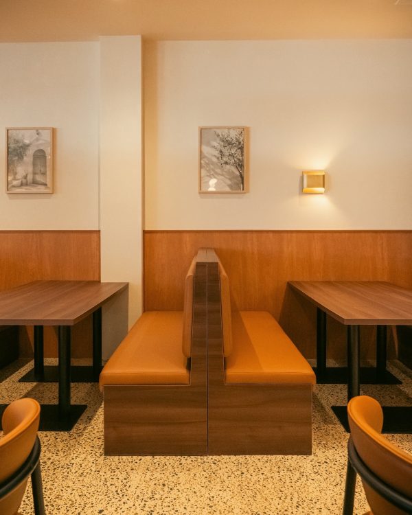 The warm and inviting interior might make you want to stay for longer than intended, with wood and earthy tones making up the bulk of the aesthetics. A mixture of tables for dining and booths for relaxing line the sides of the venue.