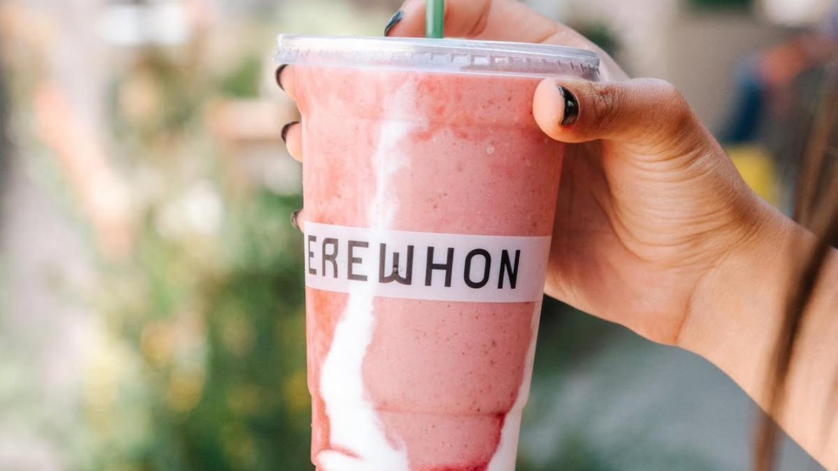 Their Hailey Bieber x Docee smoothie retails for $18.50 and comes with that now-famous strawberry glaze and coconut drizzled down the side, just like you’d find at Erewhon.
