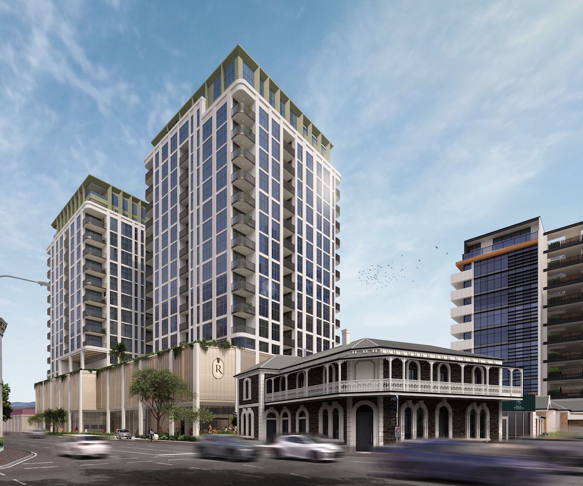 Plans include a 15-level Hills Tower and a 16-level City Tower, alongside adaptive reuse of the State Heritage-listed Royal Hotel building, which was added to the State Heritage Register in 1986. The site will also feature ground-level retail, communal open space, and bike parking and 235 on-site car parks.