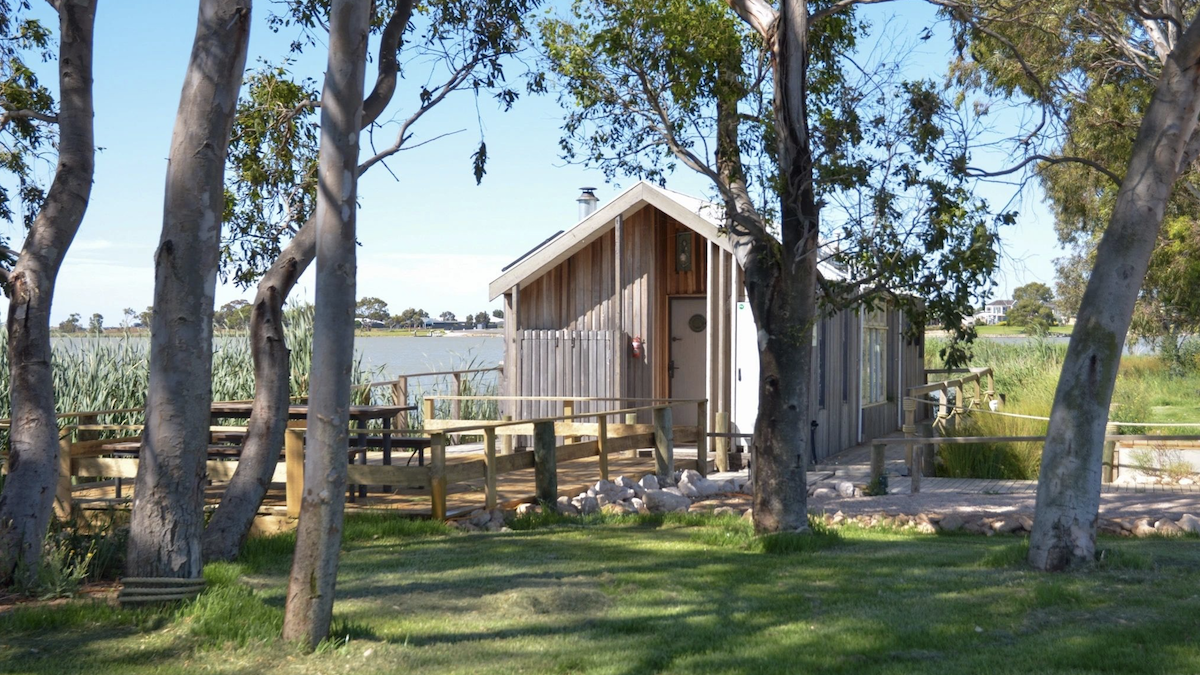 Built in South Australia using modular, low-waste construction and supported by rainwater systems, the suites pair eco-conscious design with comfort. The suites also have one Queen Green Tea memory foam bedding, Country Road linen and expansive lake views.