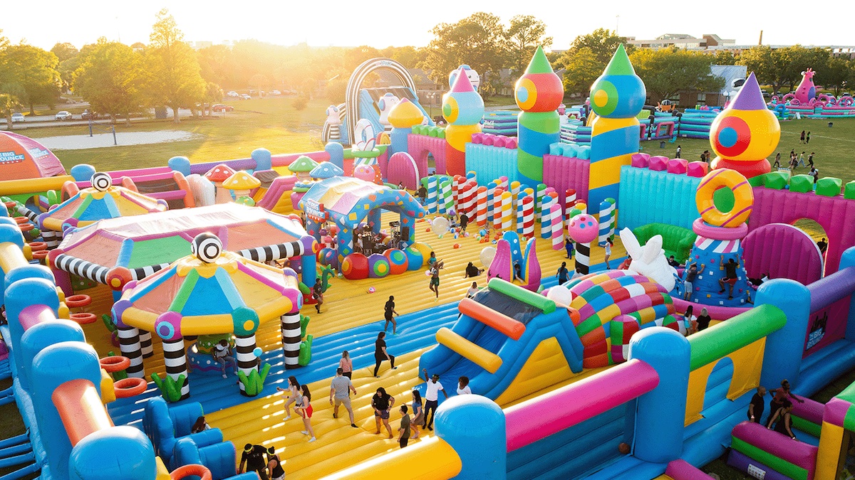 The World’s Biggest Jumping Castle is exactly what it says on the tin. It’s a massive, over 2000 square metre jumping castle with basketball hoops, climbing towers, and a giant slide that lands in a ball pit.